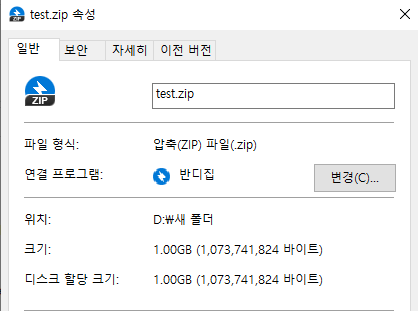 저는 1기가짜리 zip 파일을 생성해보도록하겠습니다. byte 단위로 변환해서 입력을 해줘야하며 구글에 바이트 계산기를 검색하면 쉽게 바이트 단위로 변환 가능합니다.