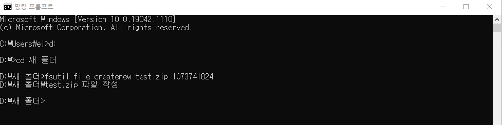 fsutil file createnew 파일명.확장자 용량(byte 단위)