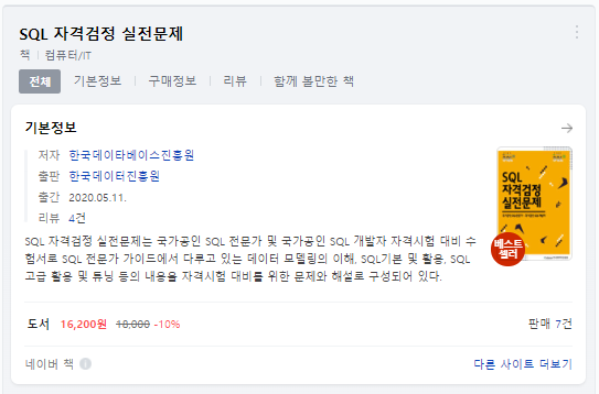 1. 무조건 책은 'SQL 자격검정 실전문제' 이걸 사시면 됩니다.