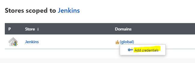 1. Dashboard > Manage Credentials 에 진입한 후 Domains의 (global) 클릭하여 'Add credentials' 를 클릭한다.