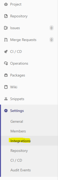 2. 프로젝트 진입 > 왼쪽 탭의 Settings > Integrations 클릭