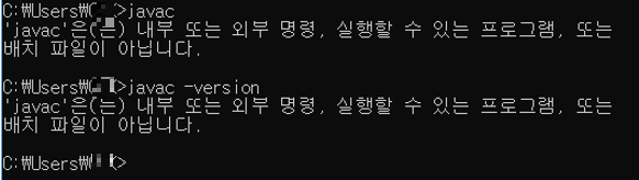 cmd에서 '“XXXX”은(는) 내부 또는 외부 명령, 실행할 수 있는 프로그램, 또는 배치 파일이 아닙니다.' 라고 뜬다면 오타와 버전, 경로 확인을 해야합니다.